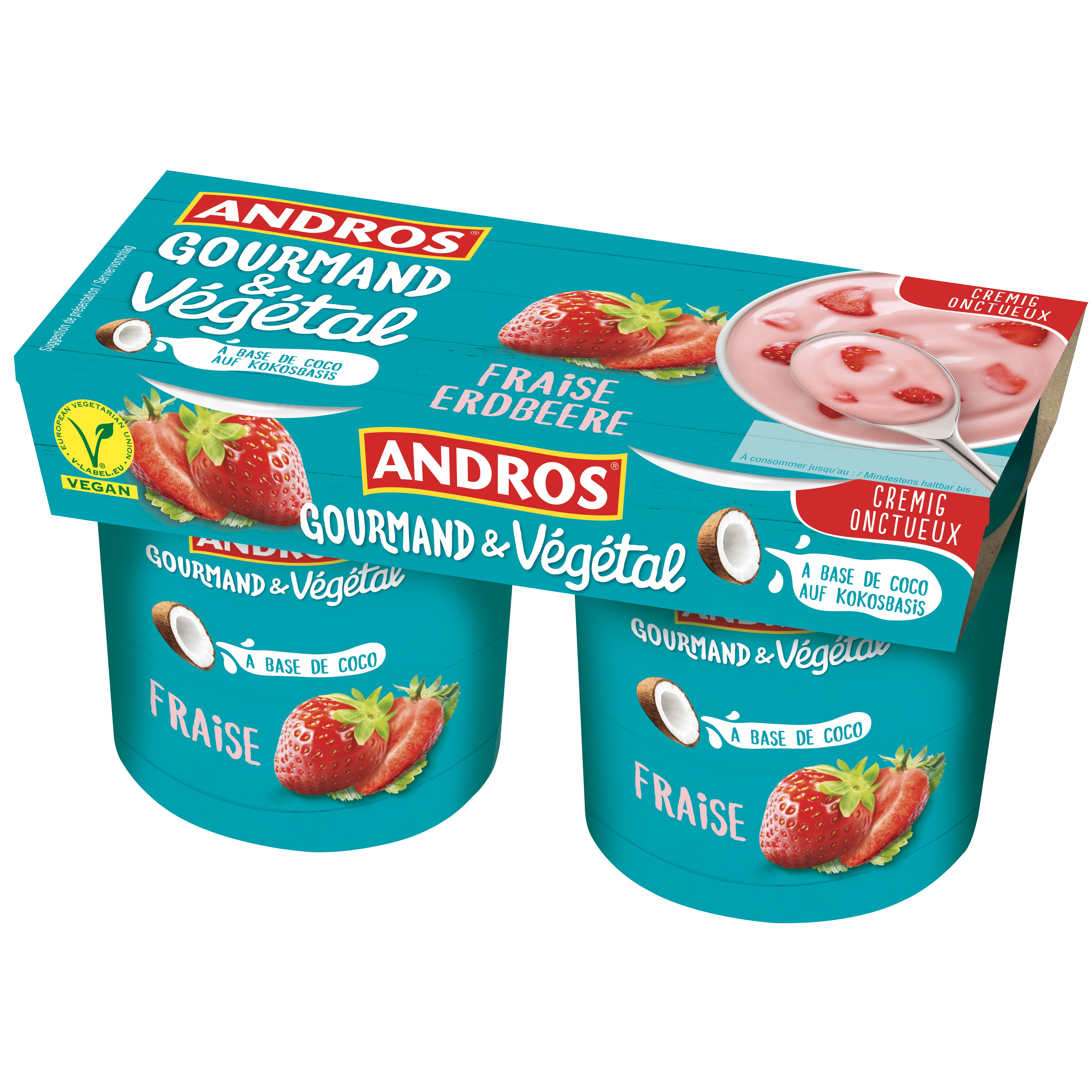 Das französische Familienunternehmen Andros – hierzulande bekannt für die „Bonne Maman“ Konfitüren – hat mit Gourmand & Végétal neue vegetarische Joghurts und Desserts als Alternative zu Kuhmilch-Produkten kreiert. Gourmand & Végétal bietet besten Geschmack und Cremigkeit auf 100 % pflanzlicher Basis. Basierend auf Kokosmilch oder Mandelmilch enthalten die Produkte ausschließlich pflanzliche Zutaten und sind dabei nicht nur laktose- und glutenfrei, sondern auch frei von Soja, Cholesterin sowie künstlichen Aromen, Farb- und Konservierungsstoffen. Sie sind leicht verdaulich und eine gute Kalziumquelle und sie sind eine optimale Alternative für Menschen, die an Intoleranzen leiden.