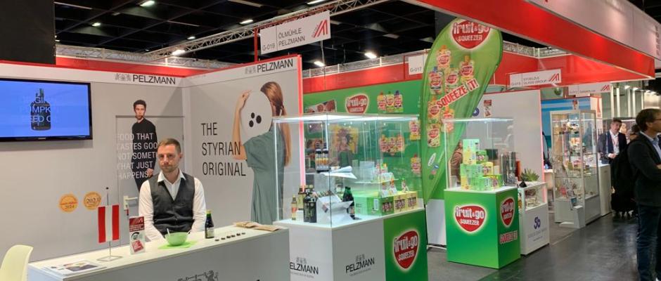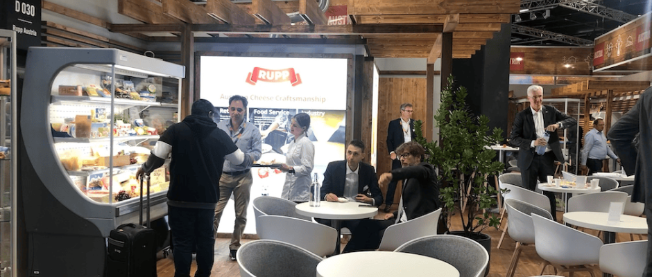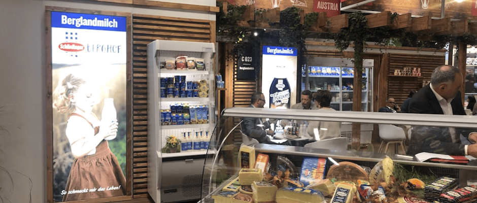 Der Ausstellungsstand von Österreichs größter Molkerei zeigt die Vielfalt an Produkten auf einem Fleck und der Besucherstrom beweist, dass österreichische Molkereiprodukte sehr gerne im Ausland genossen werden. Neu ist im Sortiment der Brat- und Pfannenkäse zu 170g.