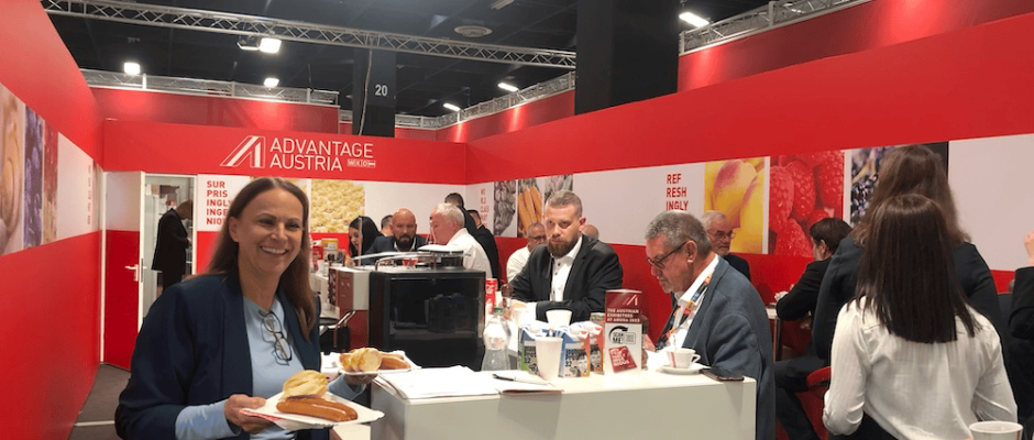 Österreichs Lebensmittel sind heiß begehrt. Das spürte man an den zahlreichen Interessenten für die rot-weiß-roten Produkte. Auf den Gemeinschaftsständen der AWO der Wirtschaftskammer Österreich tummelten sich die Besucher. Die Verantwortliche für Lebensmittelmessen, Mag. Marion Tschernutter, bestand ihre „Anuga“-Feuerprobe mit Bravour: denn auch die AWO war vom Personalmangel betroffen und so mussten alle Mitarbeiter selbst beim „Frankfurter Kochen“ mitanpacken. Sidestep: für die nächsten Messen werden immer wieder Freie Mitarbeiterinnen und Mitarbeiter gesucht (Marion.Tschernutter@wko.at).