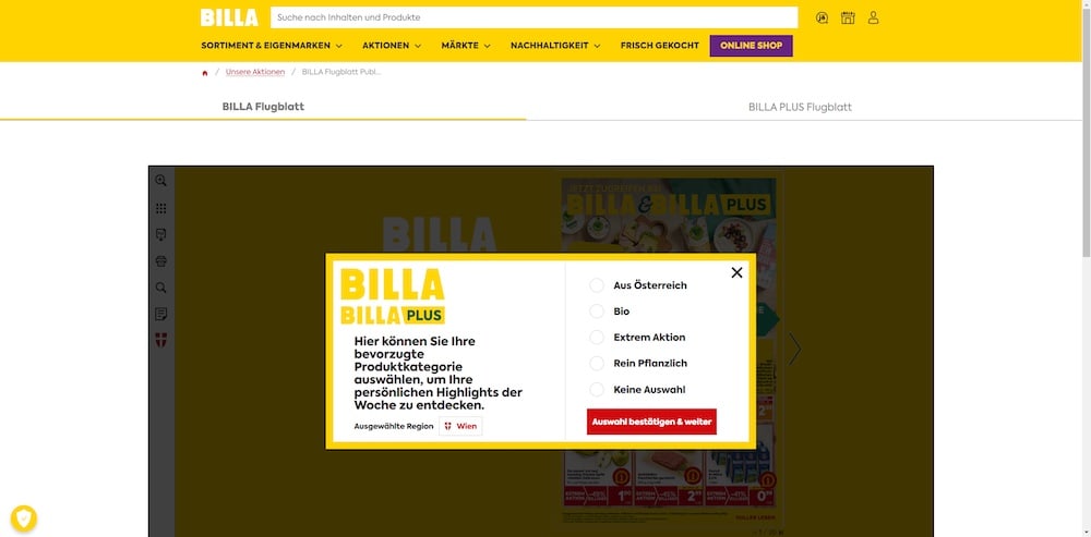 Digitalisierung und Personalisierung stehen im Fokus des digitalen Flugblattes, welches auf der BILLA Website unter www.billa.at zu finden ist. Bis zuletzt handelte es sich dabei um ein Abbild des physischen Flugblattes, mit dem man sich über Angebote bei Billa und Billa Plus am Laufenden hielten. Ab sofort können diese im interaktiven Flugblatt bevorzugte Produktkategorien wie zum Beispiel „Bio“, „rein pflanzlich“ oder „aus Österreich“ auswählen, um ihre persönlichen Präferenzen als Highlightseite abgebildet zu bekommen. Interaktiv wird es durch Verlinkungen zu Rezepten und weiterführenden Informationen zu den abgebildeten Produkten. Ebenfalls können informative Videos und Produktslider eingebunden werden sowie eine nützliche Suchfunktion und Seitenübersicht.
