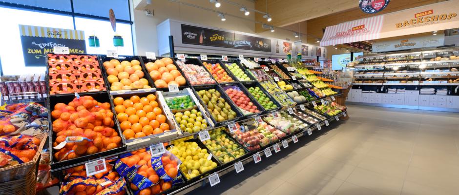 Auch der Westen profitiert von der Renovierungsphase: Die gesamte Billa Filiale Inzing wurde in vier Monaten umgebaut und hat nun 600 m2. Im neugestalteten Obst- und Gemüsebereich – der zum größten Teil regional und saisonal ausgestattet ist – der neu entwickelten Feinkostabteilung oder im Backshop schafft die neue, kulinarische Küchen- und Haushaltsoptik eine angenehme Einkaufsatmosphäre.