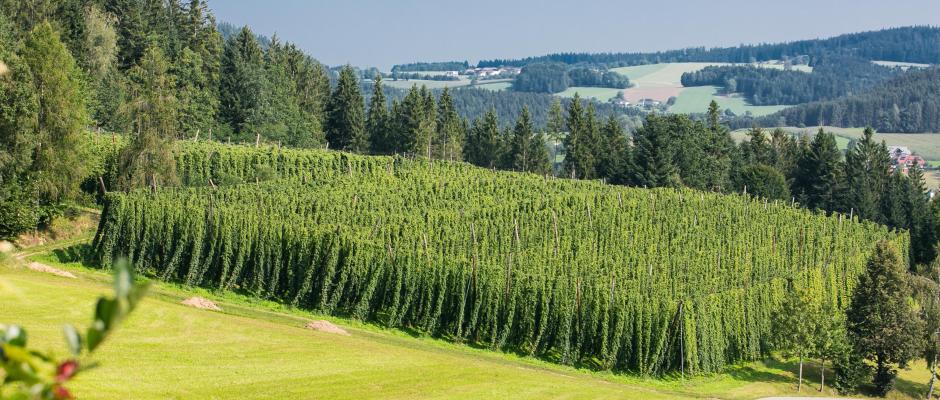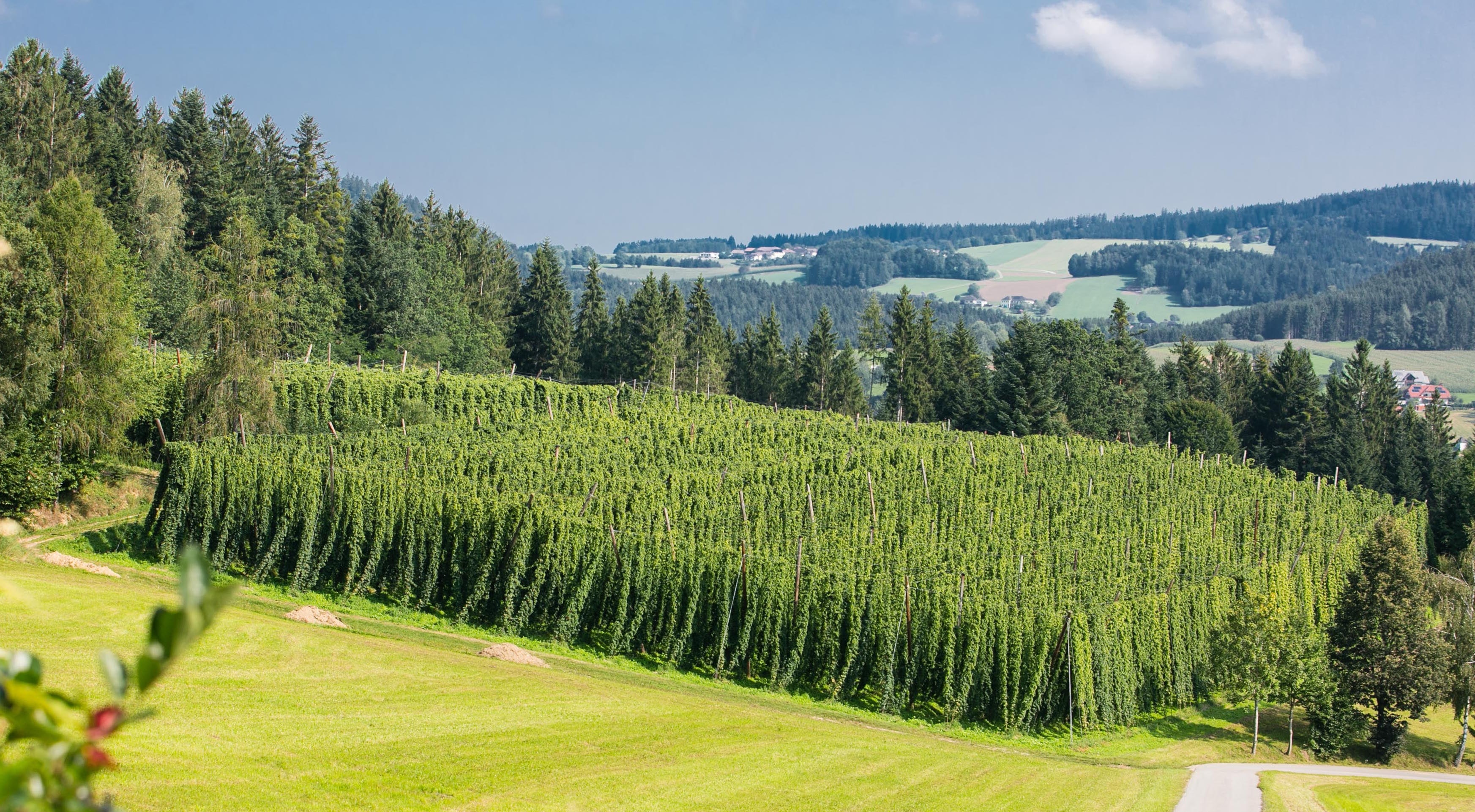 Beim Hopfen werden 85 bis 90% aus heimischem Anbau abgedeckt. Für diesen Rohstoff werden langfristige Verträge mit österreichischen Bauern abgeschlossen, deren Preise deutlich über dem europäischen Schnitt liegen. Die Hauptanbaugebiete von Hopfen sind hierzulande im Mühlviertel, in Leutschach in der Südsteiermark sowie im Waldviertel in Niederösterreich. Der Gesamtbedarf an Hopfen der Brau Union Österreich kann mit heimischen Sorten nicht gedeckt werden, da es Sorten gibt, die in in unserem Land aufgrund des Klimas nicht wachsen, aber für die Herstellung spezieller Biersorten wie etwa des Pale Ale nötig sind.