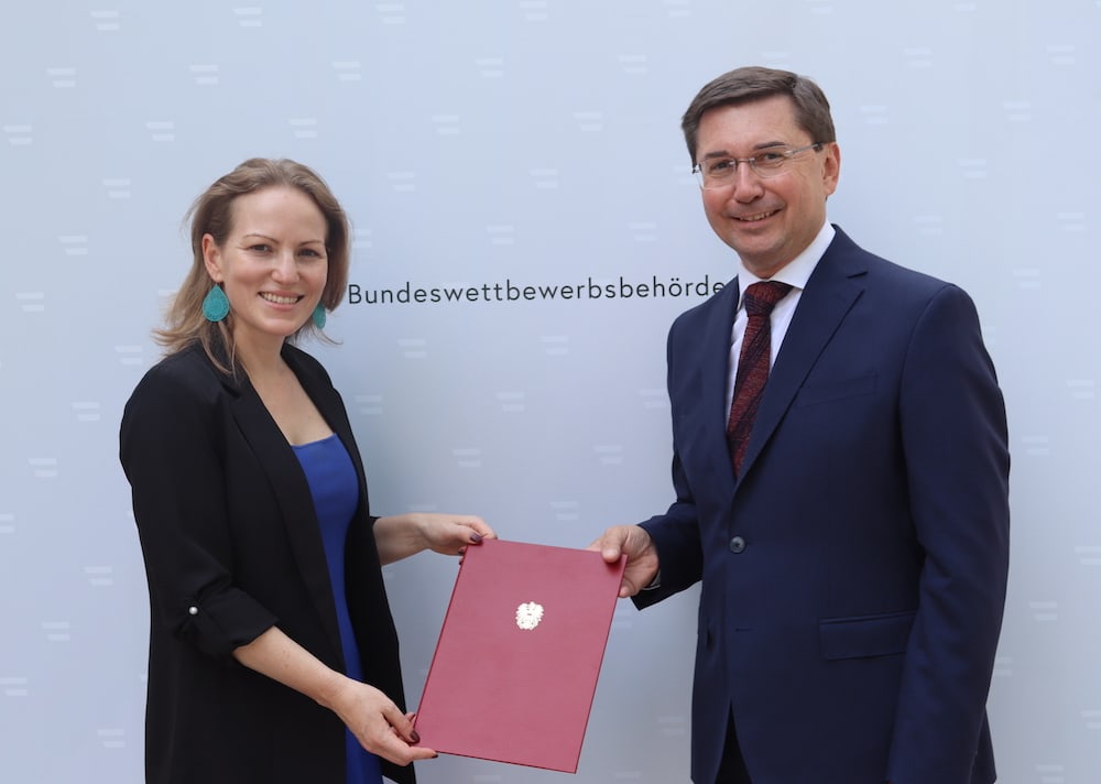 Die Generaldirektorin Natalie Harsdorf überreichte Martin Janda das Dekret zur Bestellung zum Leiter der Geschäftsstelle. Damit übernimmt er auch die Stellvertretung der Generaldirektorin.