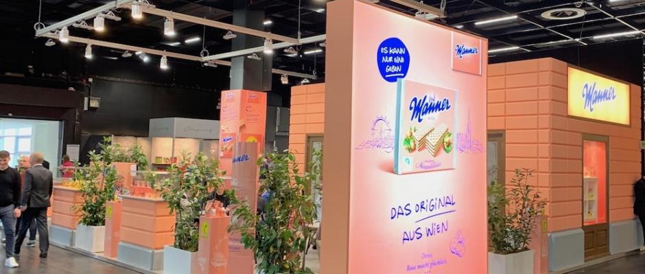 Manner ist der ISM treu. Für 2023 hat man sich für einen kleineren Messe-Stand entschieden, was dem Auftritt keinen Abbruch tat. Die rosa Waffeln nutzen die ISM jedes Jahr unter anderem stark für den Kontakt mit den internationalen Vertriebsmannschaften. Ganz frisch vorgestellt wurde das Manner-Eis, das in einem rosa Becher auftritt und den absolut typischen Manner-Geschmack liefert.