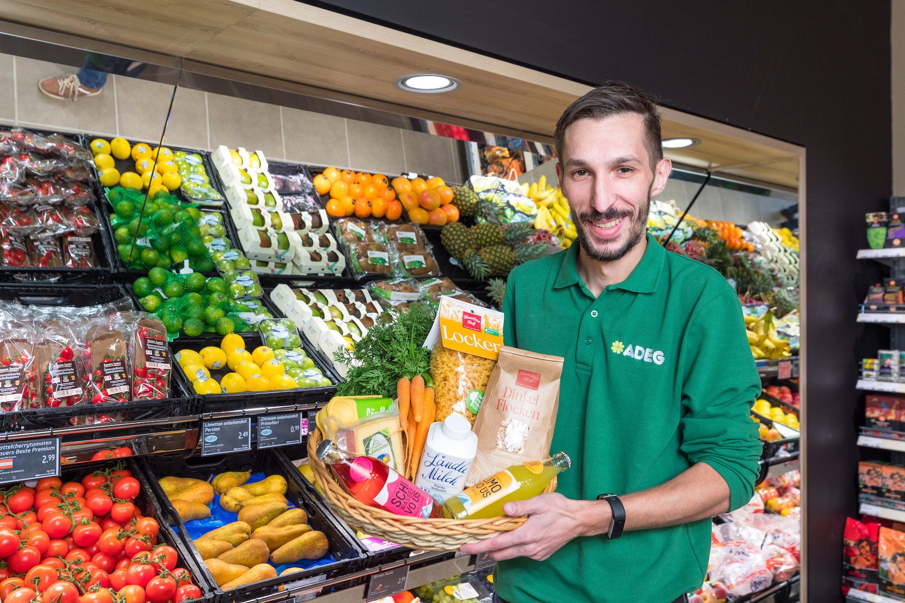„Ich kann mich mit der Marke ADEG sehr gut identifizieren und möchte mit ihr meine Zukunft schreiben“, so Bojan Acanski-Hagen, der seinen ersten Markt nach einem Komplettumbau am 21. Dezember in Feldkirch (Vbg.) eröffnet hat. Um auf die Wünsche seiner Kunden einzugehen, präsentiert Bojan Acanski-Hagen künftig eine große Bandbreite an regionalen Produkten. Damit möchte er auch kleineren Bauern in der Umgebung eine Plattform bieten. „Wenn man bei mir einkauft, soll man wissen, wo das Huhn herkommt“, betont der Kaufmann. Dabei ist er immer offen für Neues und erweitert sein Sortiment künftig Schritt für Schritt mit weiteren lokalen Erzeugnissen seiner Nachbarn. „Es gibt nichts Schöneres, als wenn das Ei oder die Kartoffel frisch vom Bauern kommt und nicht schon durch die halbe Welt transportiert wurde. Ich möchte einfach meinen Kunden das Bewusstsein für nachhaltige Lebensmittel und deren Herkunft vermitteln“, erläutert der 39-Jährige.