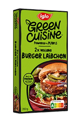 Basierend auf Erbsenprotein und mit Kräutern und Gewürzen geschmacklich abgestimmt, versprechen die veganen Burger Laibchen der iglo Green Cuisine saftig-aromatischen Genuss. Die pflanzenbasierten Burger-Patties können wahlweise mit zwei Esslöffel Öl in der Pfanne, im Backrohr oder natürlich auch am Grill gebraten werden und lassen sich für allerlei kreative Burger-Kreationen einsetzen.