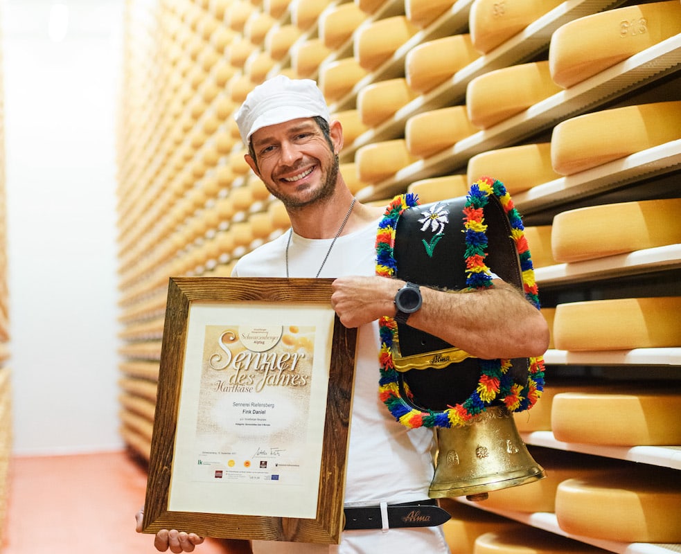 Das Team der Sennerei Riefensberg darf sich über je 1x Gold für den 6-9 Monate gereiften Bergkäse und den Bergkäse über 9 Monate freuen. Ein weiteres Highlight für die Sennerei Riefensberg ist zudem die Auszeichnung von Senner Daniel Fink als „Senner des Jahres 2021“. Ebenfalls wurde die Sennerei Bezau Oberdorf mit der gleichen Punkteanzahl mit Gold für den 6-9 Monate gereiften Bergkäse ausgezeichnet und holte Silber beim Bergkäse über 9 Monate gereift. Die Sennerei Lingenau darf sich über Gold für den Emmentaler und Bronze für den Bergkäse 6-9 Monate gereift freuen. Für das Vorsäß Vorderhopfreben mit Senner Peter Kohler gab es für den Alpkäse jung 2021 Bronze.