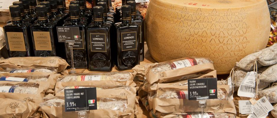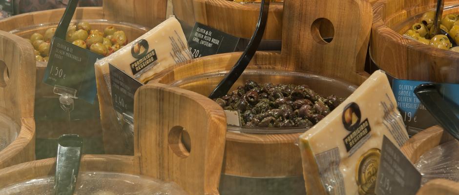 Die Looks & Feels der Shop -in-Shop-Lösungen sind jeweils an die Marken angepasst und ein ganz spezielles Einkaufserlebnis ist dadurch entstanden: Gleich am Eingang ist ein langes Regal der Alnatura Bio-Warenwelt gewidmet. Der Schweizer Schokoladenhersteller Lindt ist mit einem Pick and Mix Tisch präsent, an dem man sich Pralinen nebst Verpackung selbst zusammenstellen kann. Auch das Weinregal bietet noch mehr als die reguläre MPreis Vinothek. Darüber hinaus wartet wie bereits erwähnt ein spezieller italienischer Feinkostbereich mit Käsen und Snacks sowie ein Qualitätsmetzger mit fachlicher Beratung auf die Kunden. Frisch zubereitetes Sushi ist ebenfalls hochwertige Convenience.