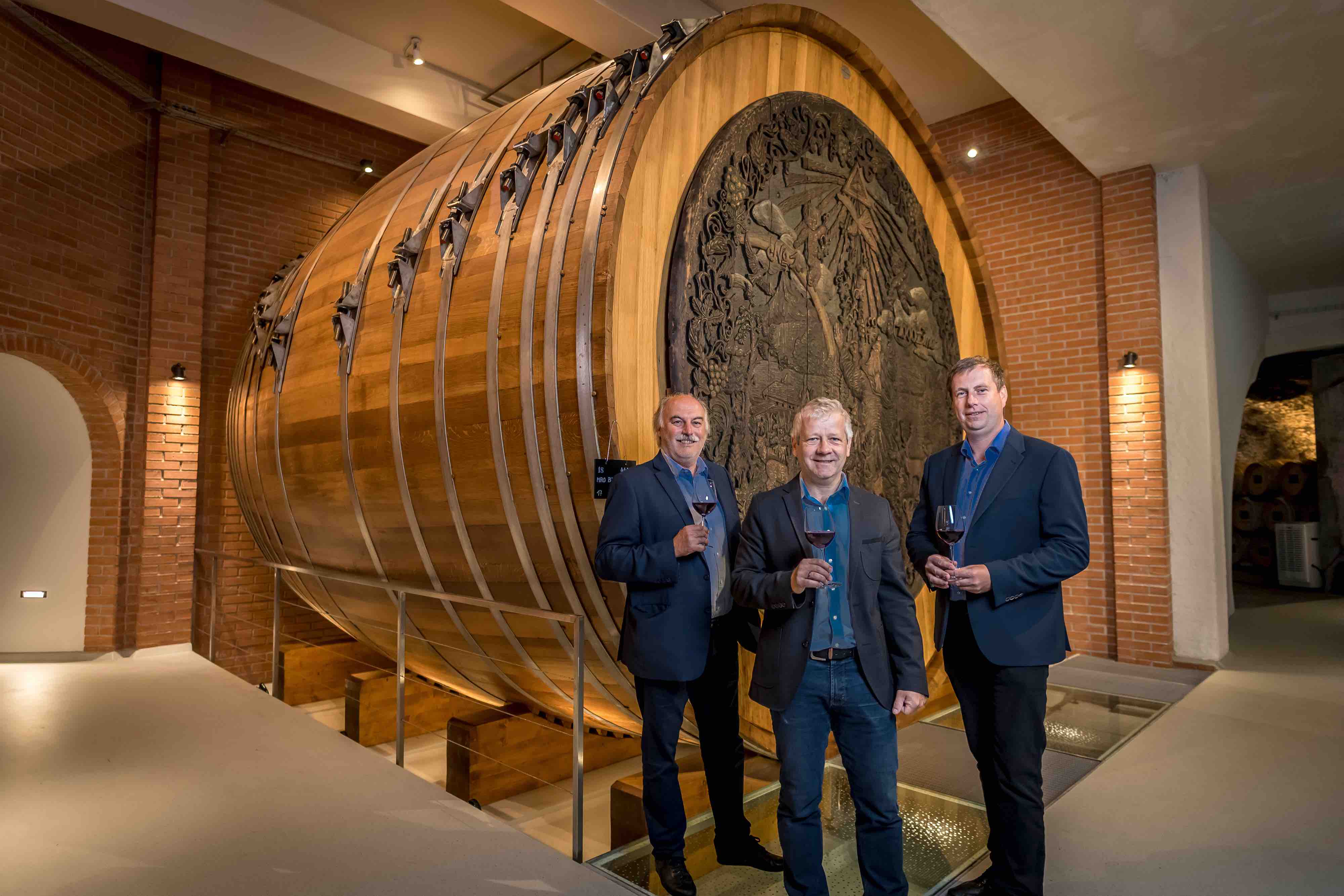 Das Vorbild ist historisch. Im Jahr 2017 machte die Weinkellerei Lenz Moser mit einer ungewöhnlichen Meldung auf sich aufmerksam. Sie hatte ein neues 1000-Eimerfass bauen lassen, mit einem Fassungsvermögen von 56.589 Litern. Darin reifte die erste Edition der Cuvée „Noah“, welche nun auf den Markt kommt.