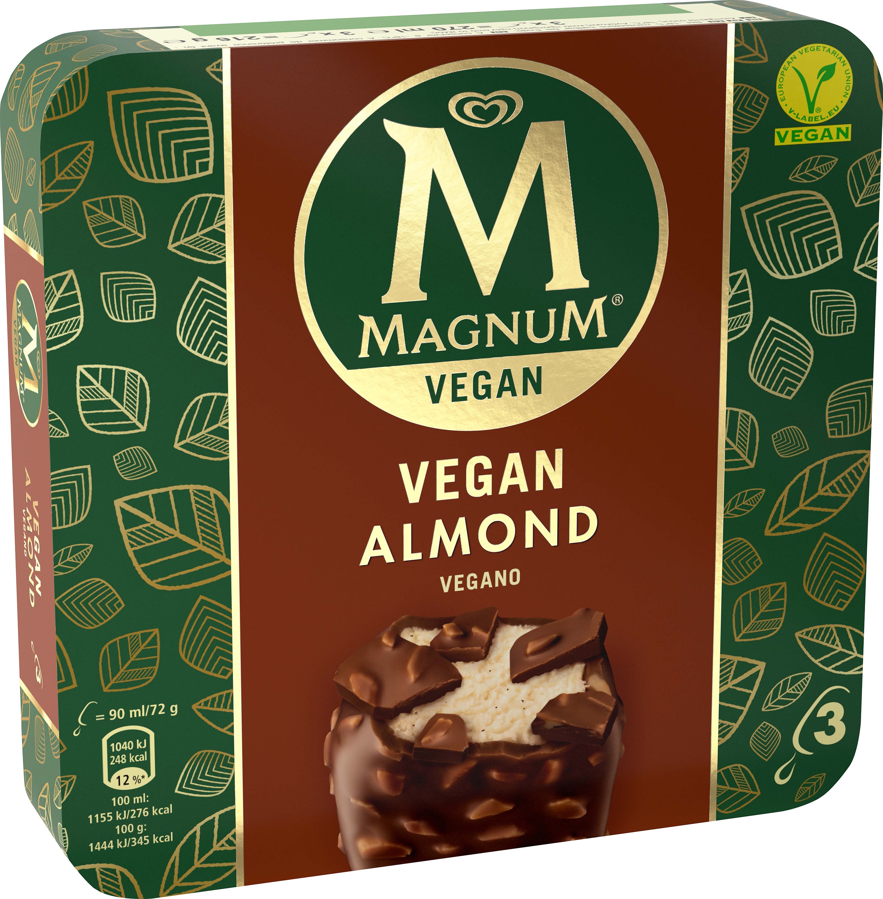 Wer bei seiner Ernährung aus gesundheitlichen oder persönlichen Gründen auf Milchprodukte verzichtet, muss nicht gleichzeitig auch auf den Genuss von Eis verzichten: Denn jetzt gibt es Magnum in den Sorten Classic und Almond auch als Variante mit rein pflanzlichen Zutaten: veganes Vanilleeis, umhüllt von veganer Schokoladenkuvertüre, die bei der Sorte Almond zusätzlich mit gerösteten Mandelstiften verfeinert ist. Magnum Vegan ist von der European Vegetarian Union zertifiziert und steht dem Klassiker mit Milcheis geschmacklich um nichts nach.