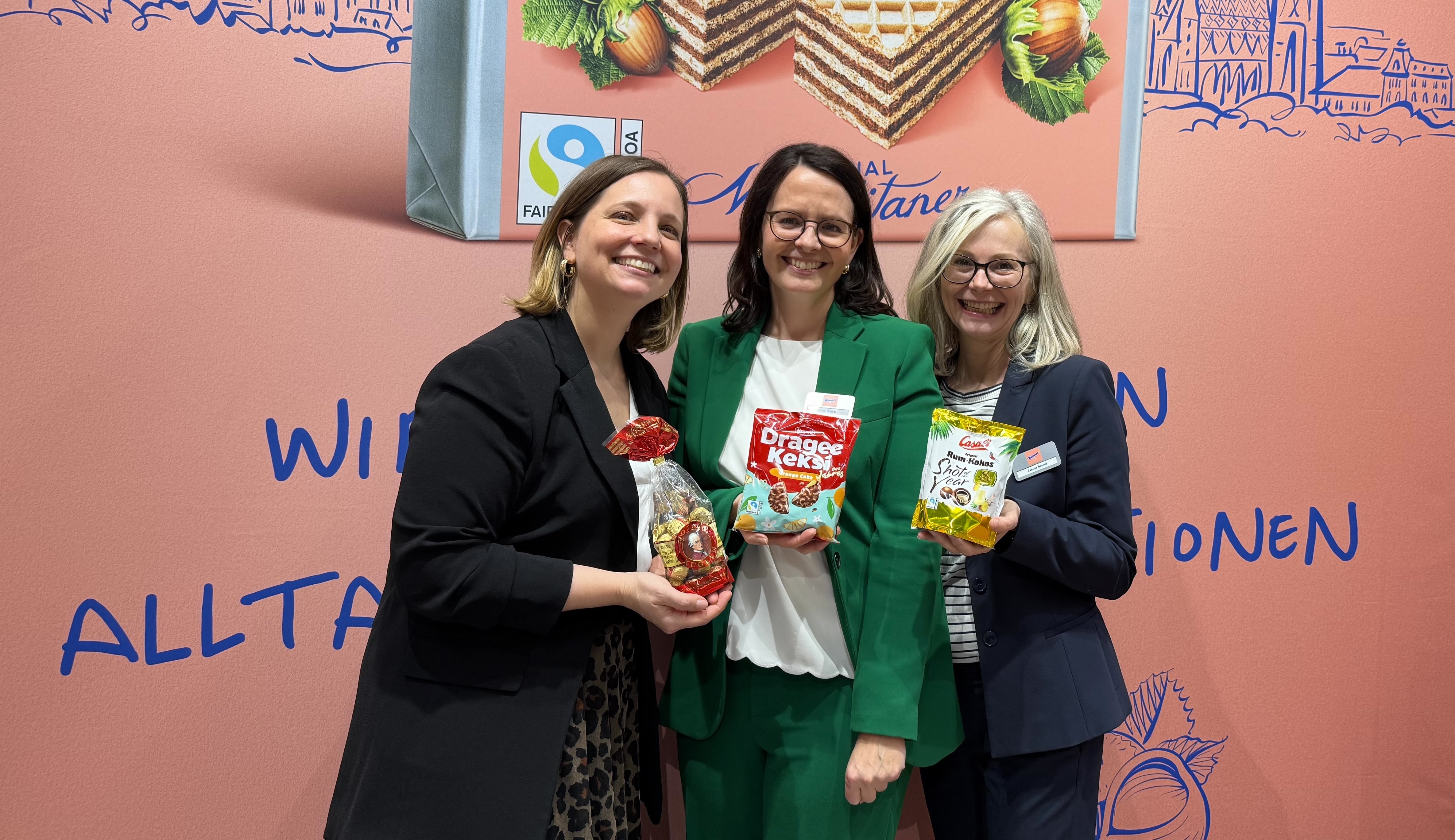Zudem werden die Manner Neapolitaner Minis einem Design-Relaunch unterzogen und zeigen sich demnächst im deutlich moderneren und frischeren Outfit. Die praktischen Flowpacks mit jeweils zwei Schnitten sind im 150 g-Beutel ideal zum Teilen. Die vegan und Fairtrade-zertifizierten Minis bestehen wie gewohnt aus fünf Lagen Waffeln mit köstlicher Füllung aus 12% Haselnüssen und 82% Haselnuss-Kakaocreme.