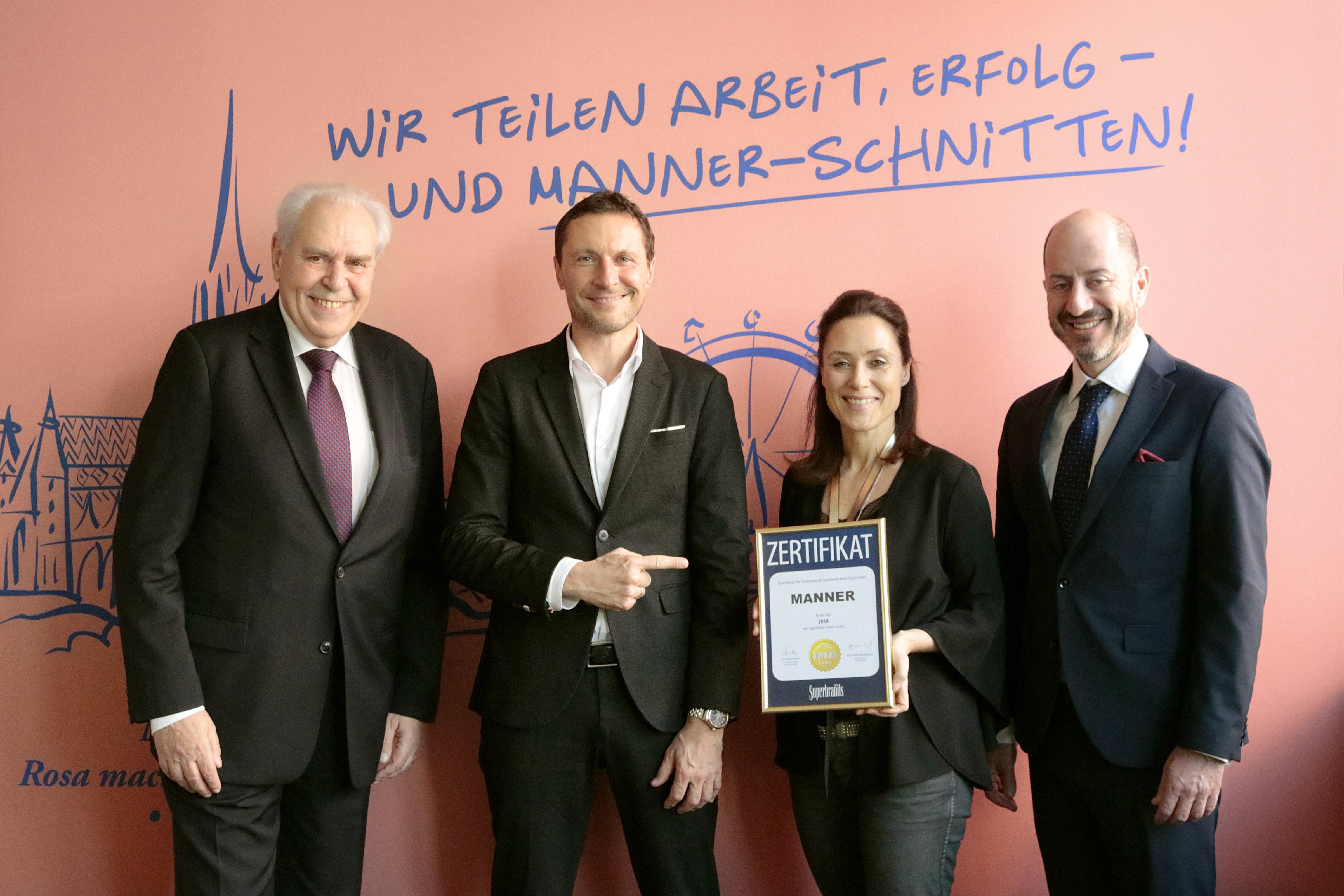 Aber auch über das Superbrands Zertifikat kann sich die Traditionsmarke freuen: Das Superbrands Austria Brand Council - bestehend aus Fachexperten und Branchenkennern - hat Manner erneut als Superbrands für 2018 gewählt. In Zusammenarbeit mit dem Markforschungsinstitut GfK Austria wurden Verbraucher in Österreich nach ihren Lieblingsmarken befragt.