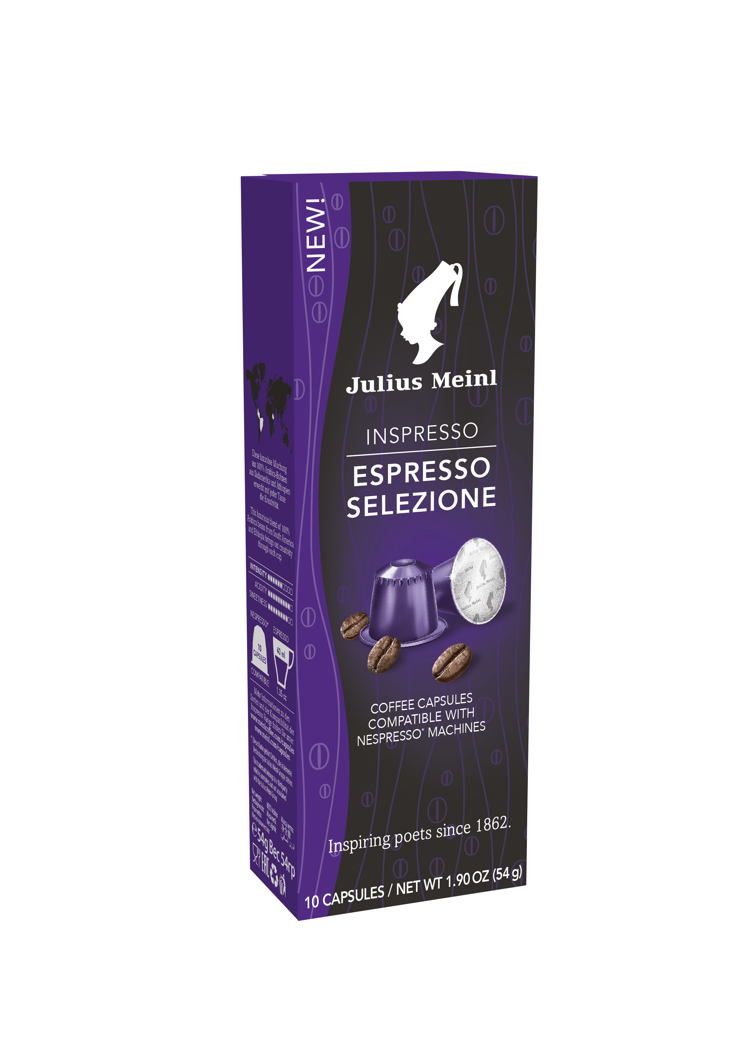 2018 wird das Sortiment der Inspresso-Kapseln von Julius Meinl weiter wachsen. Die neueste Sorte – gehalten in einer lila Verpackung – nennt sich Espresso Selezione. Sie besteht aus 100% Arabica Blend und ist von einer ausgewogner Stärke mit einem Aroma von frisch geröstetem Brot. Gelauncht wurde "Espresso Selezione" im Vorfeld des internationalen Tages der Poesie, im Rahmen der österreichweiten POS-Kampagne "Pay with a poem".
