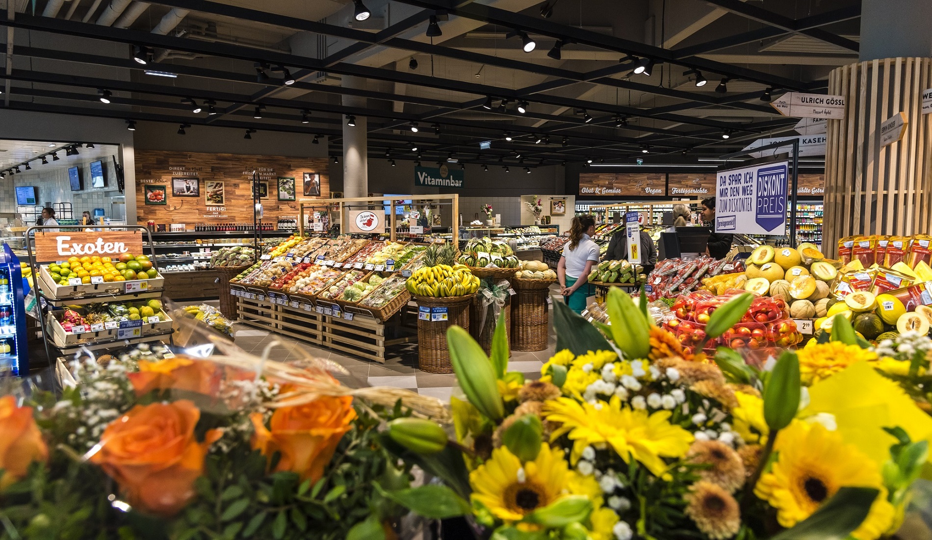 Das Marktplatzkonzept kommt auch im neuen Markt zum Einsatz: So sind die Frischebereiche, wie etwa der Fleischbereich, als extra angeordnete, einladende Nischen gestaltet. Kunden dürfen sich darüber hinaus auf eine Auswahl von 20.000 Produkten freuen. Auch im wiedereröffneten Markt in der Mühlgasse darf das 7000 Produkte umfassende „Marktplatz Österreich“-Sortiment von mehr als 500 österreichischen Produzenten nicht fehlen.