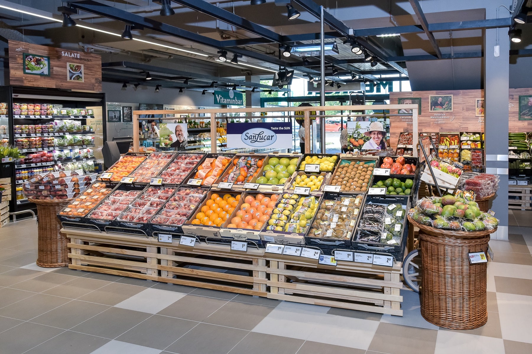 Das Marktplatzkonzept kommt auch hier zum Einsatz: So sind die Frischebereiche, wie etwa der Fleischbereich oder die Feinkost, als extra angeordnete Nischen gestaltet. Kunden erwartet darüber hinaus eine Auswahl von 20.000 Produkten. Merkur-Vorstand Harald Mießner: „Mit diesem neuen Standort können wir ideal auf die Bedürfnisse der Leute vor Ort reagieren - beispielsweise mit einem erweiterten Convenience-Sortiment - und haben damit einen aktiven Teil zur Gestaltung dieses neuen Lebensraums beigetragen." Im erstmals vergrößerten Convenience-Bereich direkt beim Eingang finden alle, die es eilig haben, über 260 vitaminreiche Produkte wie frisch im Markt zubereitete Salate, Smoothies, geschnittene Früchte, Weckerl sowie Sushi. Darüber hinaus bieten Frischeinseln mit über 600 Obst- und Gemüseartikeln täglich eine bunte Auswahl. Im neuen Markt werden Frischfleisch sowie rund 60 Frisch- und 20 Räucherfischspezialitäten und unterschiedliche Meeresfrüchte in Bedienung angeboten. Zudem kann aus bis zu 150 Schinken- und Wurstspezialitäten sowie über 150 Käsesorten in der Feinkost gewählt werden. Im Backshop, inklusive erweitertem Selbstbedienungsbereich, stehen über 100 ofenfrische Sorten Brot und Gebäck inkl. einer großen Bio-Auswahl sowie gluten- oder hefefreier Spezialsorten zur Auswahl. Ausgebildete Konditoren backen in der Marktkonditorei über 30 Variationen an Mehlspeisen und Torten. Der Markt verfügt über ein vielfältiges Kaffeesortiment, so wird auch loser Kaffee angeboten.