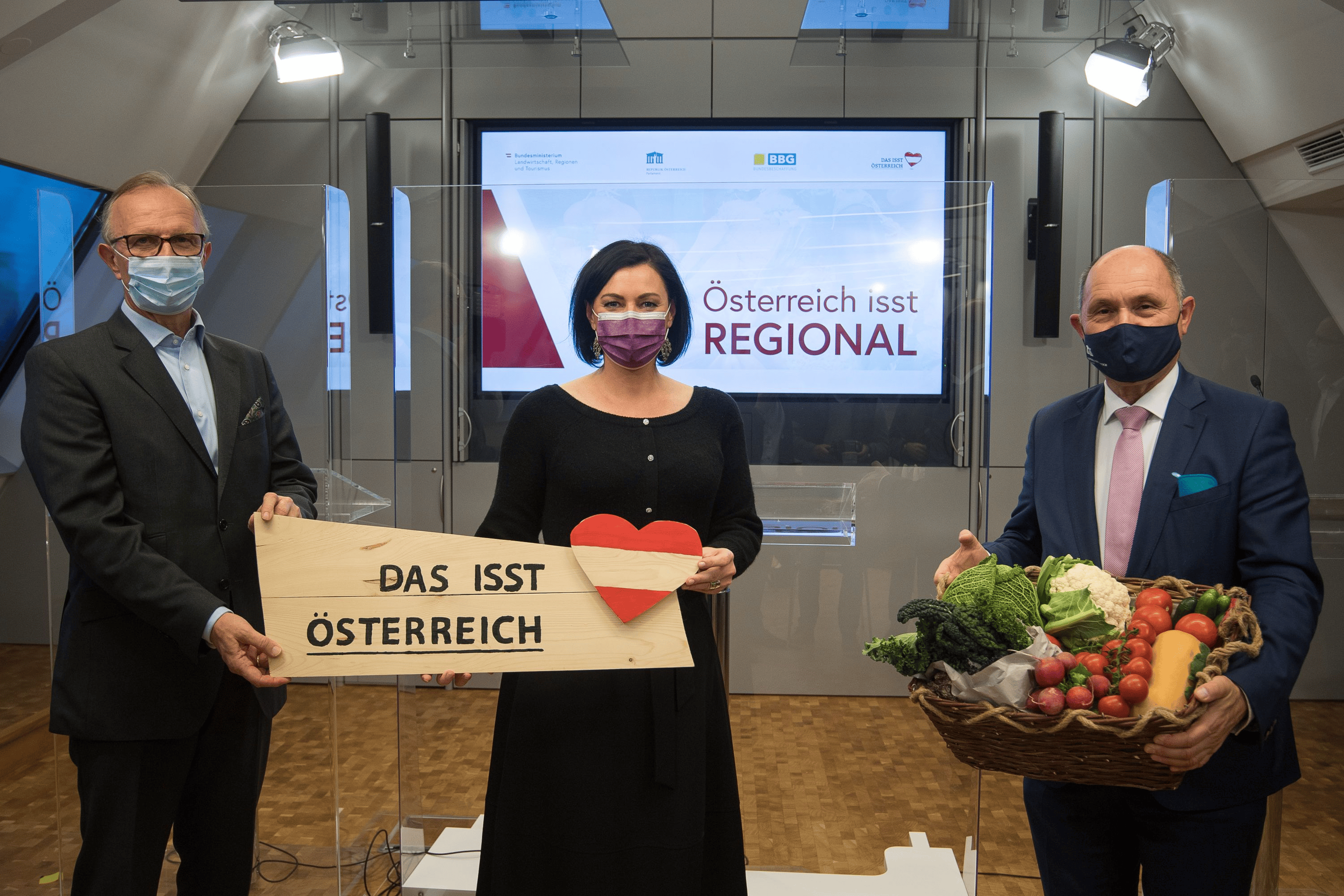 "Wir wollen, dass die Menschen in Österreich auf regionale Lebensmittel setzen, daher werden wir im Bund selbstverständlich mit gutem Beispiel vorangehen", sagt Landwirtschaftsministerin Elisabeth Köstinger bei einer gemeinsamen Pressekonferenz mit Nationalratspräsident Wolfgang Sobotka und BBG-Geschäftsführer Andreas Nemec. "Bei öffentlichen Ausschreibungen und Beschaffungen sollen heimische Produkte den Vorzug erhalten", betont Köstinger. „Wir wissen, dass es überall auf der Welt günstigere Lebensmittel als im eigenen Land gibt, aber das ist nicht der österreichische Weg“, so Köstinger weiter. Man will einen hohen Selbstversorgungsweg gehen, um die Wertschöpfung abermals in Österreich zu halten.