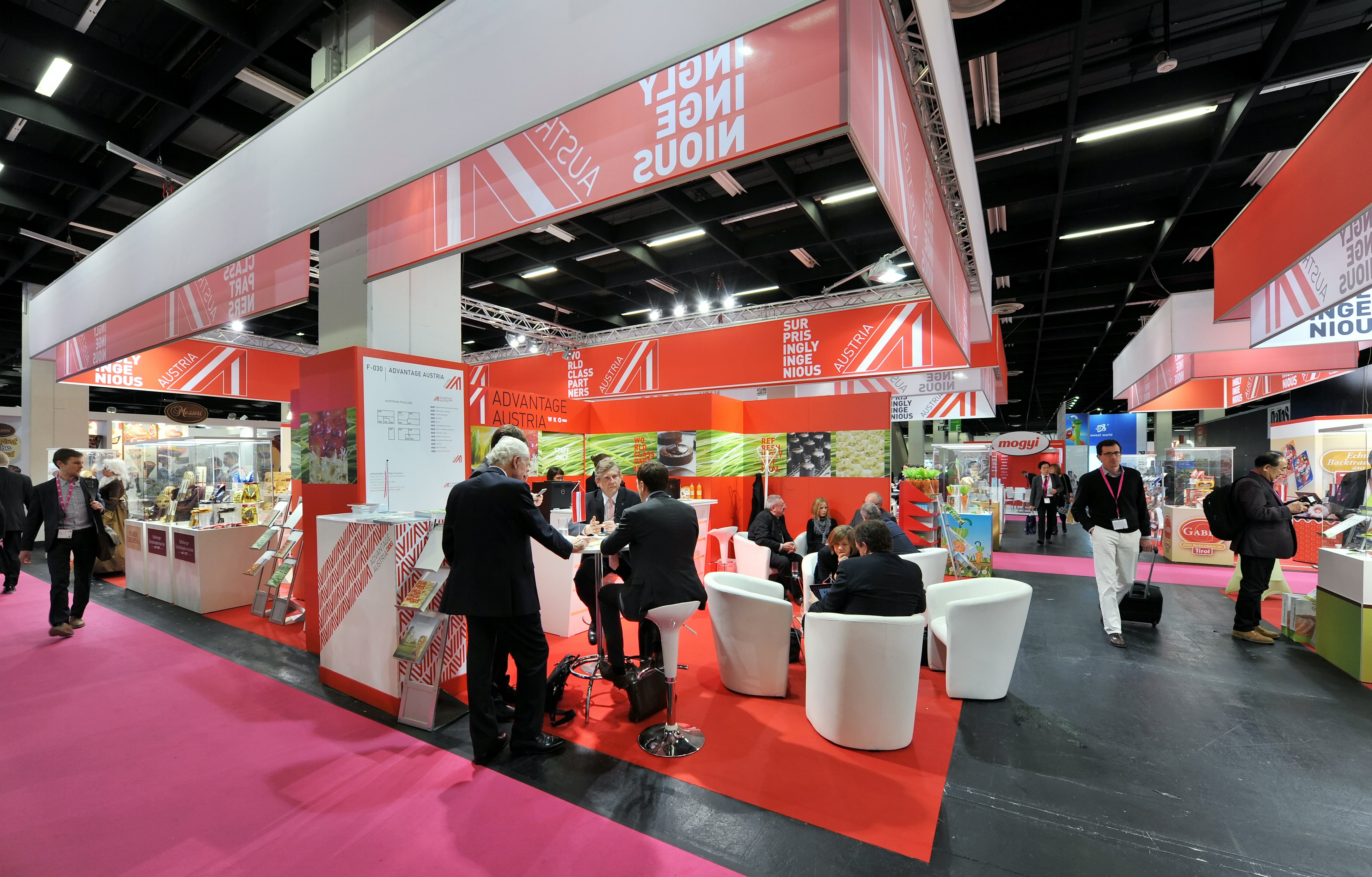 Die Produktpalette der österreichischen Firmen umfasst Premium-Schokolade im mittleren Preissegment, Keks, Confiserie, Waffeln und Lebkuchen, Feinbackwaren, Knabbergebäck, Twist and Drink-Fruchtsaft-Limonaden, Disney-Lizenzfiguren, Marzipanfiguren, Teegebäck und Macarons, Back- und Brotwaren, Innovationen am Schokolademarkt, Dragees, Schokoladeriegel und Pralinenspezialitäten sowie feines Original Wiener Konfekt. heuer neu an Bord sind die Unternehmen Alpha Republic und Frunix. Der wichtigste Exportmarkt für österreichische Süßwaren ist Deutschland.