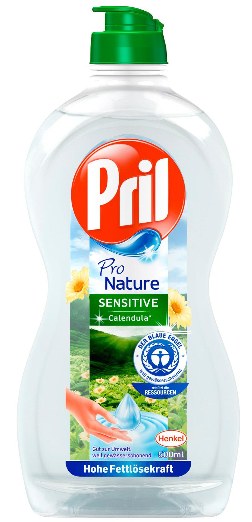 Pril Pro Nature kommt der Umwelt gleich mehrfach zugute und macht dabei keinerlei Kompromisse hinsichtlich Sauberkeit und Fettlösekraft. Alle Produkte bestehen zu 99,9 % aus natürlichen Inhaltsstoffen und enthalten, zur Schonung von Gewässern und Natur, nur leicht abbaubare Tenside sowie Rohstoffe aus nachhaltigem Anbau. Ein weiteres Plus für die Umwelt sind die neuen Flaschen aus 100 % recyceltem Plastik. Sie sind auch nach dem Gebrauch wieder vollständig recyclebar. Alle „Pro Nature“-Produkte sind mit dem unabhängigen Umweltsiegel „Der Blaue Engel“ zertifiziert.