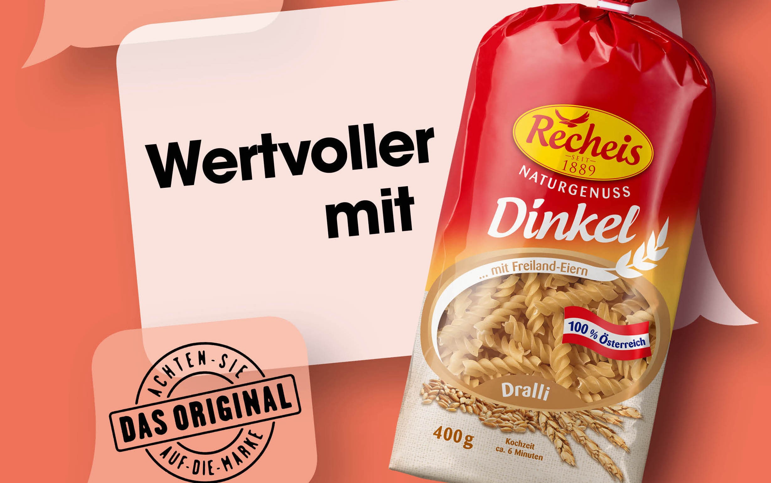 Recheis Marketing- und Verkaufsleiter Peter Dellemann über die österreichweite Markenartikelkampagne: „Diese Kampagne unterstreicht erneut unsere Kompetenz als Qualitätshersteller. Wir kommunizieren konsequent die Vorteile und die Kraft unserer Originalprodukte. Unsere Konsumentinnen und Konsumenten bestätigen unseren Weg der sicheren, sorgfältigen Verarbeitung österreichischer Zutaten mit ihrem Vertrauen.“ Recheis setzt bei der Kampagne auf einen Mediamix aus Plakaten, Online Bannern, Social Media Ads sowie einer Marktguru Cashback Kampagne. Damit können auch jüngere Kundengruppen für die Marke begeistert werden und Recheis überzeugt als Experte für die österreichische Nudelküche.