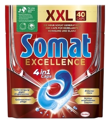 Das Geschirr schonend, aber tiefenreinigend spülen – das ist kein Widerspruch. Denn die Inhaltsstoffe der neuen Somat Excellence 4in1 Caps sind – mittels getrennter Kammern – ideal an den Bedarf im Spülzyklus angepasst und garantieren eine optimale Reinigung. Während das Pulver eine Enzymmischung für Reinigungskraft und eine Bleichmittelmischung gegen farbige Verschmutzungen und Flecken enthält, schützen die drei Gel-Kammern vor Glaskorrosion, wirken Wasserflecken entgegen und sorgen für glänzendes Geschirr und strahlende Gläser. Die Somat Excellence 4in1 Caps sind auch bei niedrigen Temperaturen bzw. Eco-Programmen einsetzbar und helfen so, die Spülmaschine energiesparend zu nutzen. Auch bei der Verpackung geht Somat den nächsten Schritt: Der Standbeutel ist zu 100 % recyclebar. Und die Hülle der Caps ist biologisch abbaubar und zu 100 % wasserlöslich, zudem fallen im Herstellungsprozess keinerlei Deponieabfälle an.