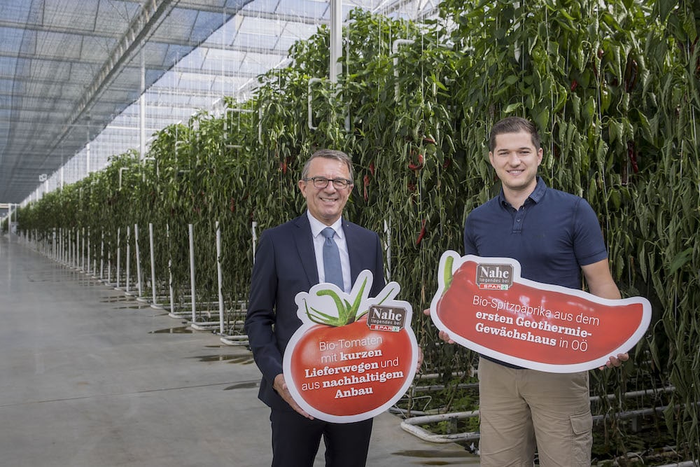 Nun geht man einen Schritt weiter in die Königsklasse des Gemüseanbaus: im oberösterreichischen Geinberg wird seit heuer im Frühjahr Gemüse in Bio-Qualität angebaut – ebenfalls mit Hilfe von Geothermie (die Thermalquelle Geinberg befindet sich in unmittelbarer Nähe) und bereits jetzt werden 30.000 Tassen Paradeiser pro Woche der Sorte San Marzano und 70.000 Stück Spitz-Paprika – beide in Bio-Qualität - bei Spar österreichweit vertrieben. Die Mini- und Midi-Gurken sollen 2023 folgen.