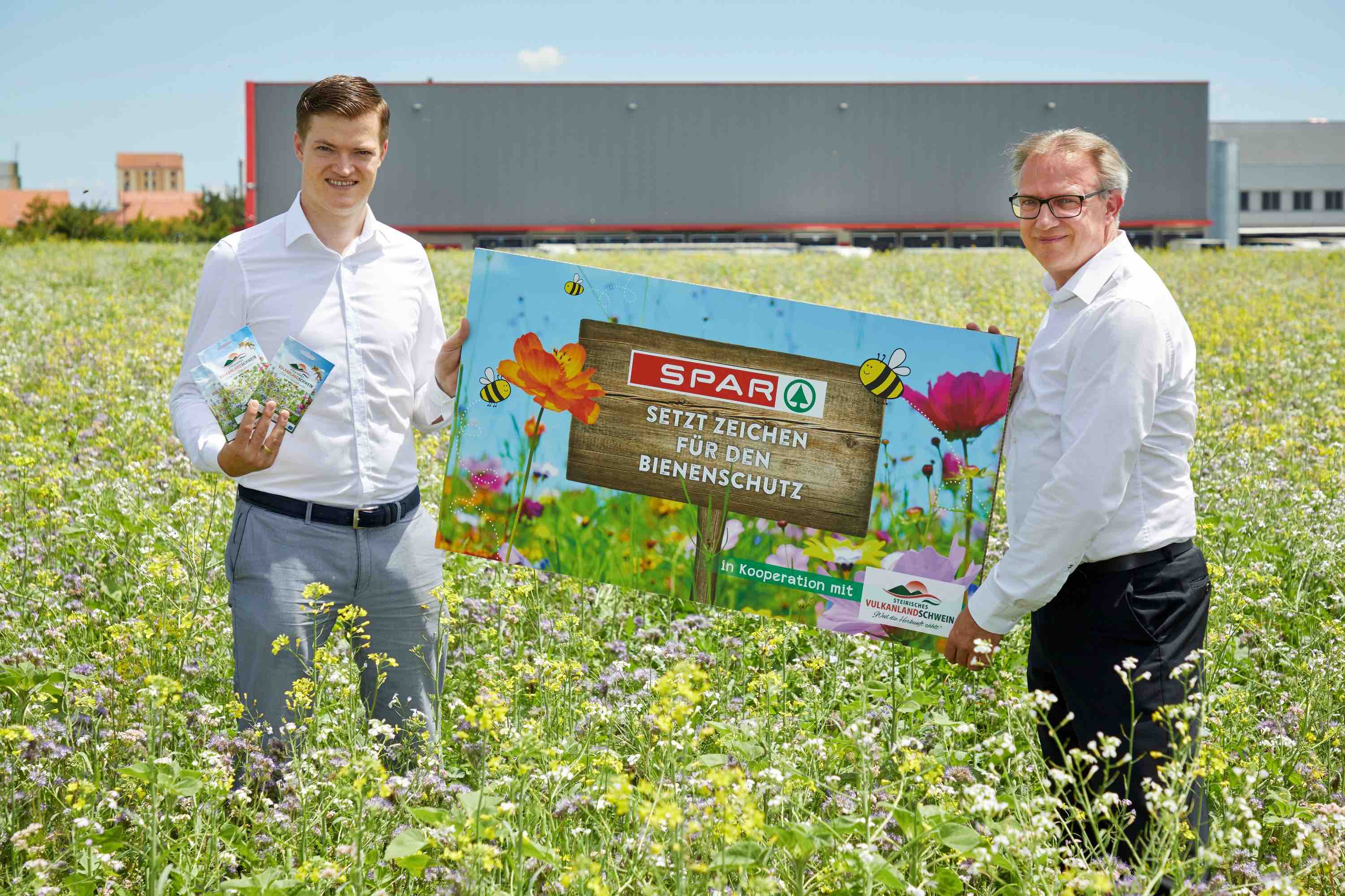 Die Wiese wurde in Kooperation mit den Landwirten des Steirischen Vulkanlandschweines angelegt. Seit 2017 setzen sich diese für den Bienenschutz ein und erweitern jährlich die Blumenwiesen Flächen im Vulkanland. Neben der Blumenwiese werden auch Bienenstöcke bei der Spar Zentrale aufgestellt. Und zusätzlich verschenken Spar und die steirischen Vulkanlandbauern 7000 gratis Blumensamen-Säckchen an die Eurospar Kunden, damit auch diese zuhause eine Blumenwiese für Bienen anlegen können.