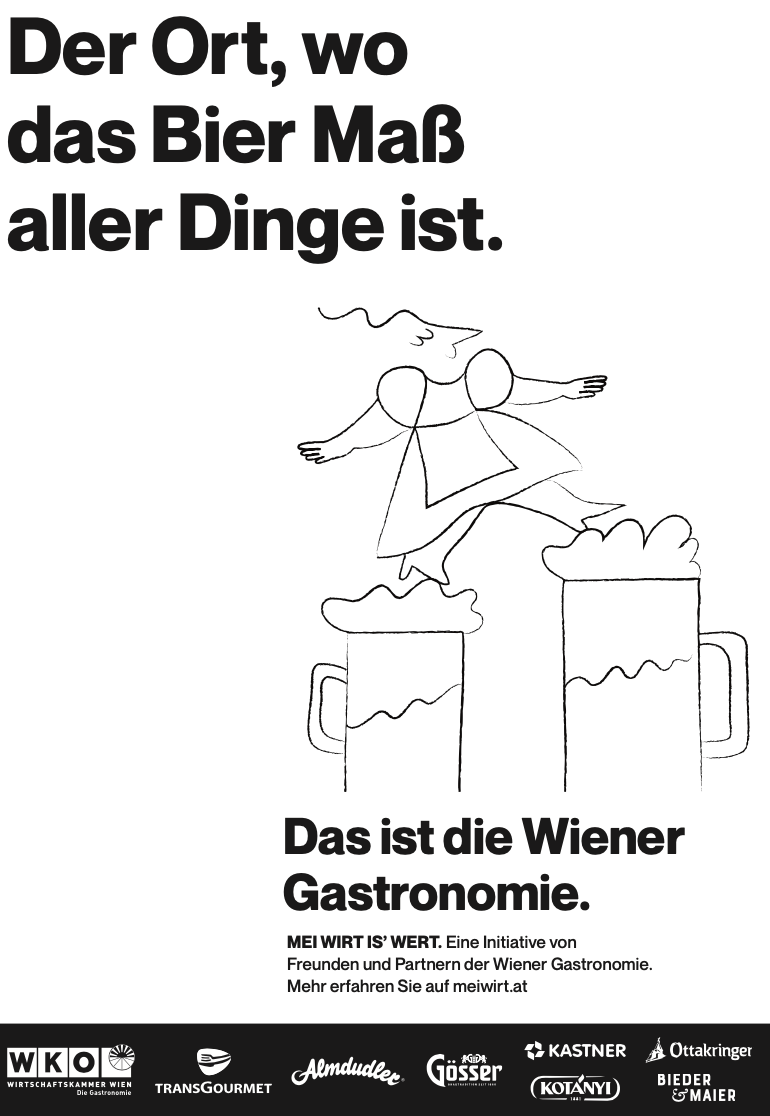 „Bei Wirt is’ Wert“ lautet die Kampagne der Wiener Wirtschaftskammer zur Unterstützung der Gastronomie in Zeiten von Teuerungen und Konsumverhalten. Das Besondere daran: Die Initiative darf auf wertvolle Unterstützung von Transgourmet Österreich GmbH, Almdudler Limonade A. & S. Klein GmbH & Co KG, Brau Union Österreich AG mit der Marke Gösser, Kotányi GmbH, Ottakringer Brauerei GmbH, Kastner Gruppe sowie Bieder & Maier m2 Kaffeemanufaktur und Vertriebsges.m.b.H. zählen.
