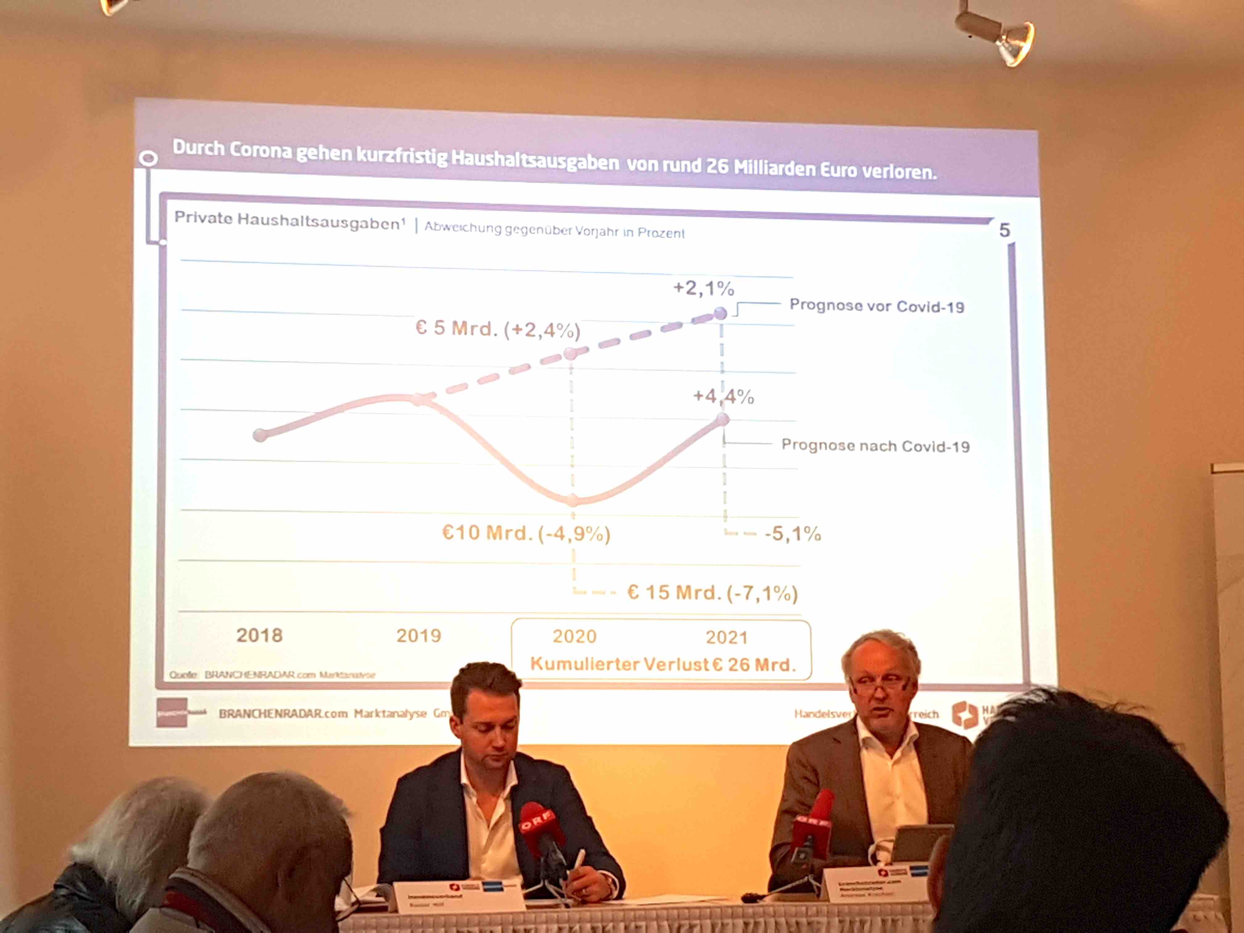 „Wir gehen davon aus, dass die heimische Wirtschaft 2020 und 2021 durch die Corona-Krise einen Ausgabenrückgang im Ausmaß von rund 26 Milliarden Euro verkraften muss. Allein heuer rechnen wir mit einem coronabedingten Rückgang der Ausgaben privater österreichischer Haushalte um insgesamt 15 Milliarden Euro", so Rainer Will.