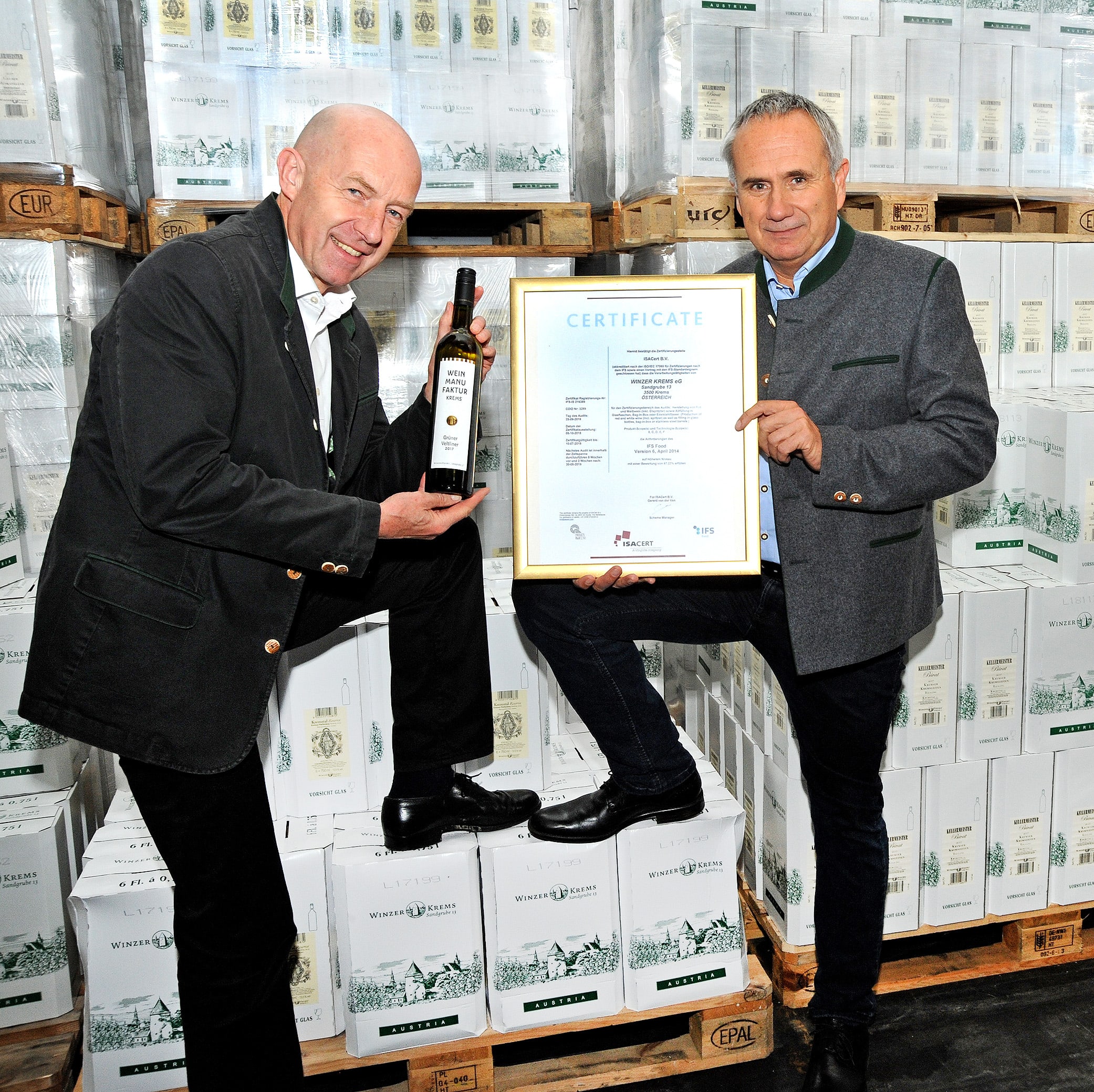 2018 wurde Winzer Krems für den gesamten Herstellungsprozess – von der Traube bis zur gefüllten Flasche – durch „International Featured Standard - Food“ ausgezeichnet. Das Audit fand 2018 erstmals unangekündigt statt und die Zertifizierung wurde auf „höherem Niveau“ mit 97,23% erfüllt. Mit dieser Auszeichnung wird nicht nur der Schutz der Verbraucher gesichert, sondern auch die hohe Qualität der vielfältigen Weine von Winzer Krems verdeutlicht.